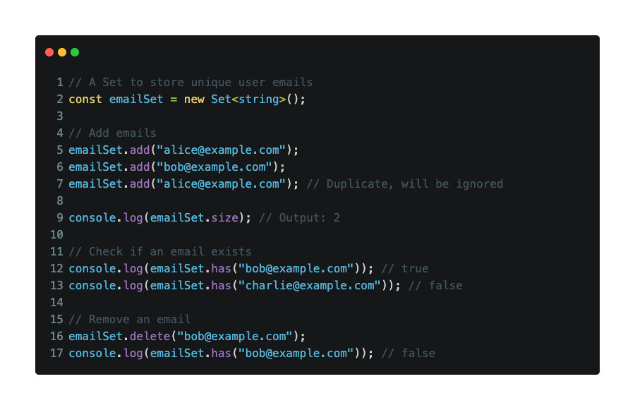 A Set is a special collection that only stores unique values — no duplicates allowed. It’s great when you want to make sure something is not added more than once.